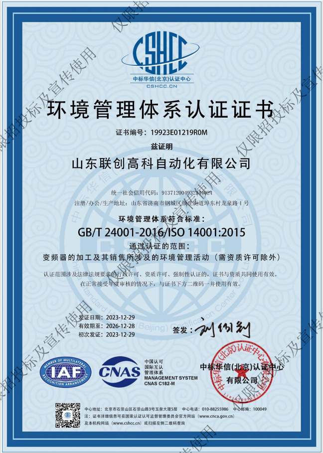 环境管理体系认证证书